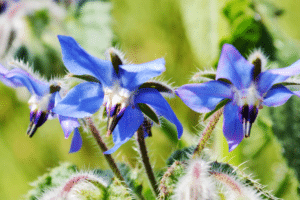 La bourrache est appréciée pour ses fleurs bleu vif et sa capacité à attirer les abeilles et autres pollinisateurs. Ses fleurs et feuilles comestibles sont un ajout intéressant à la cuisine de jardin.